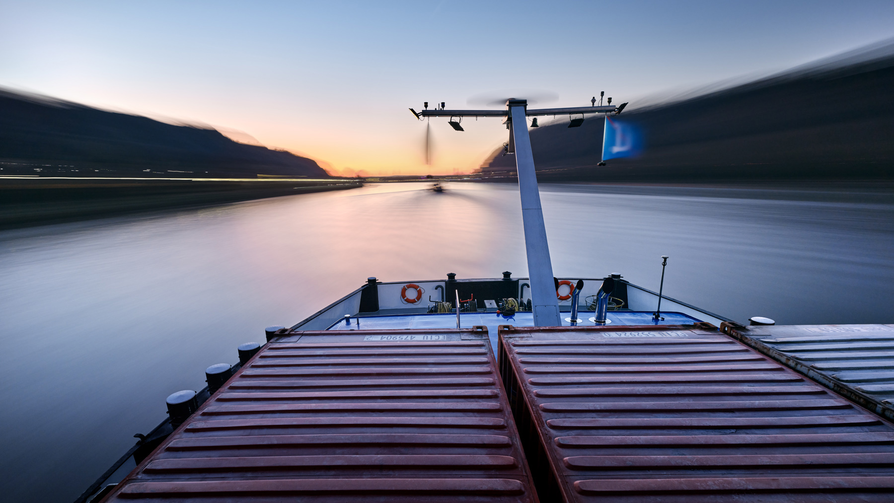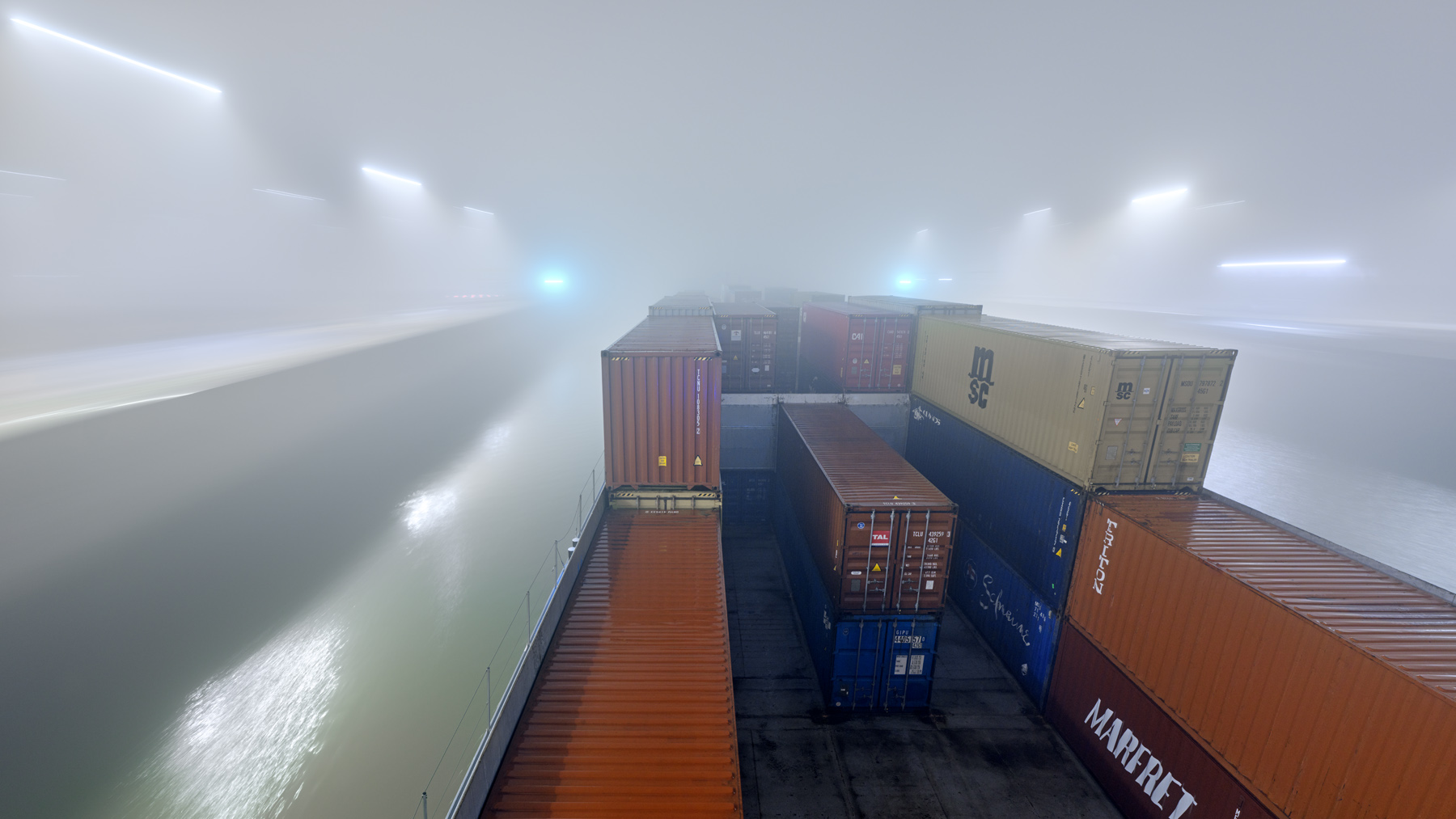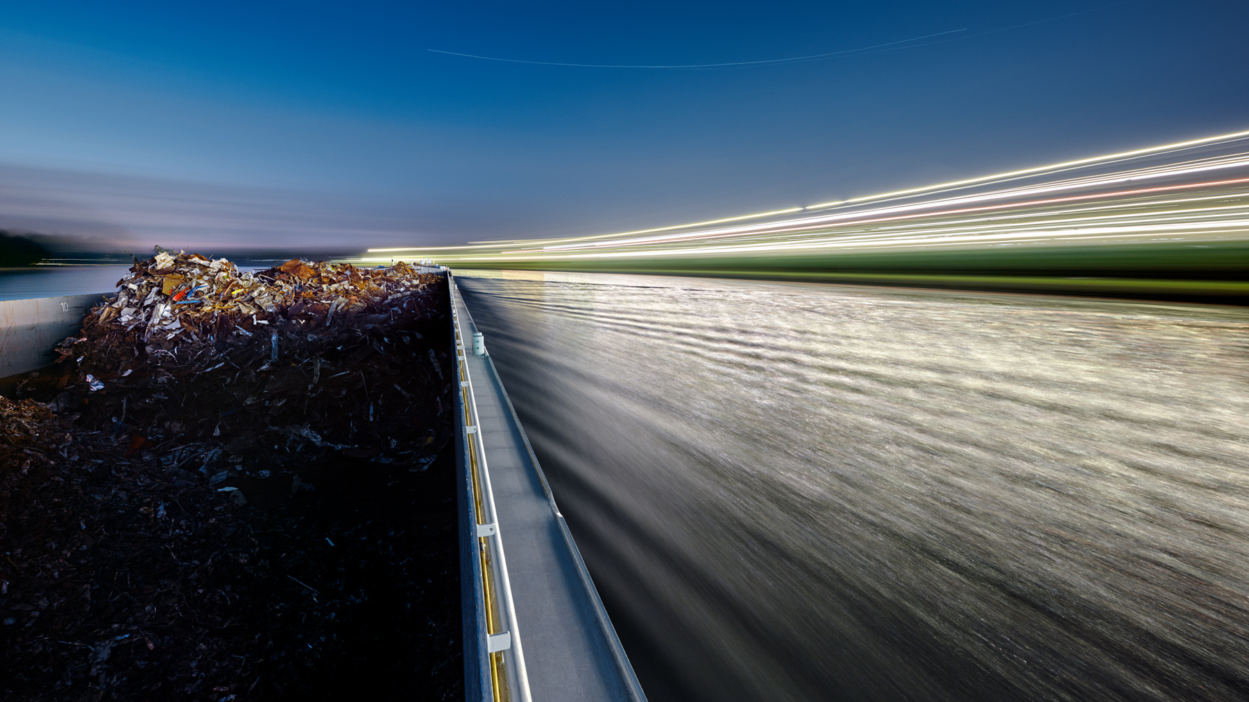 Through my long-term project Waterway and my work trips on inland cargo ships, I experience a shift in perspective: from an observer on the bank to a fellow traveller on the water. With my Waterway series of photographs, I would like to invite you to share in this shift in perspective. I wish you a stimulating and enjoyable visual journey!